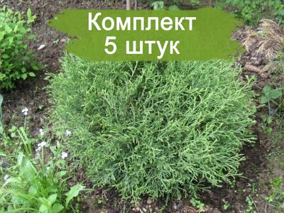 В комплект входит 5 саженцев туи "Мистер Боулинг Болл". Каждый саженец аккуратно упакован для обеспечения безопасности при транспортировке.