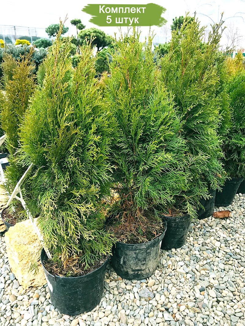 Приобретая этот комплект из 5 саженцев туи "Смарагд", вы сможете создать эффектный зелёный уголок на вашем участке, который будет радовать глаз круглый год.